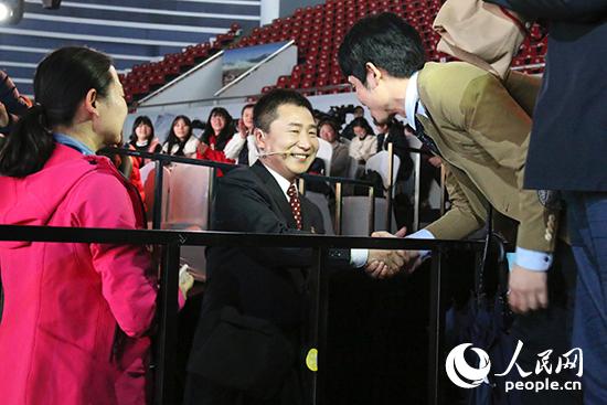 參賽選手向最后一位進(jìn)入30強的高建輝表示祝賀。實習(xí)生王趙童 攝