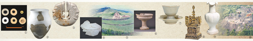 圖⑦:該窯址出土的秘色瓷盞與盞托。