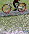 •   4月17日,一場春雨過后,一名游客在落滿花瓣的浙江省嘉興市南湖風(fēng)景區(qū)內(nèi)騎行。 新華社發(fā)(金鵬 攝)