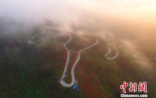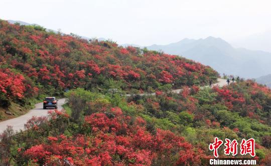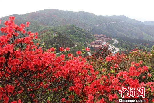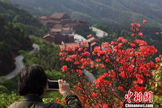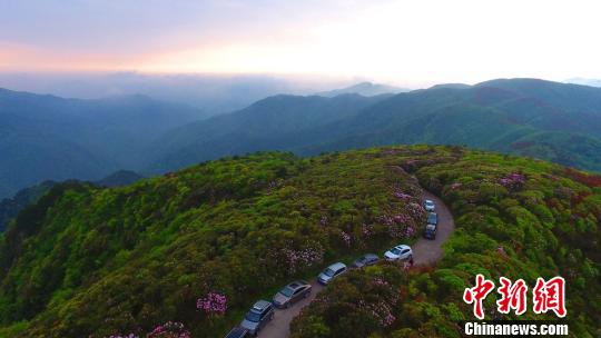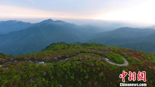 5月7日,湖南省永州市陽(yáng)明山國(guó)家森林公園內(nèi)的近10萬(wàn)畝野生杜鵑花陸續(xù)綻放,吸引游客紛至沓來(lái)。據(jù)了解,永州市陽(yáng)明山國(guó)家森林公園的杜鵑花共有28種,其中云錦杜鵑是當(dāng)?shù)靥厣贩N。何紅福 攝