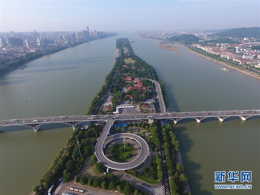 7月15日,長沙橘子洲大橋和橋下重新開園的長沙橘子洲景區(qū)。