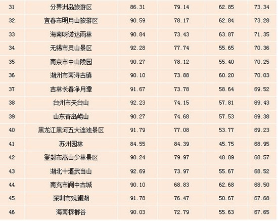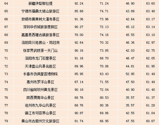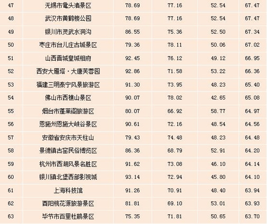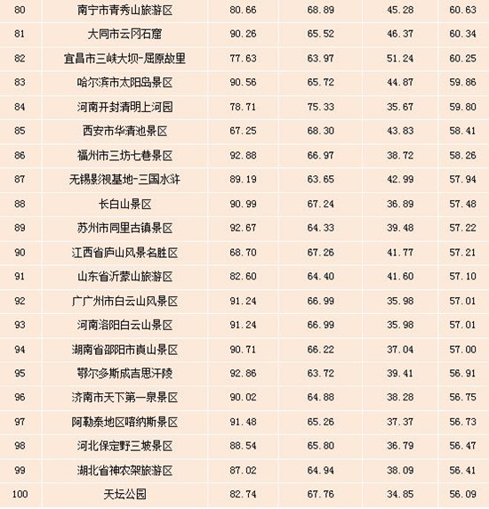 表:全國5A級(jí)景區(qū)雙微運(yùn)營效果排行榜(Top100)