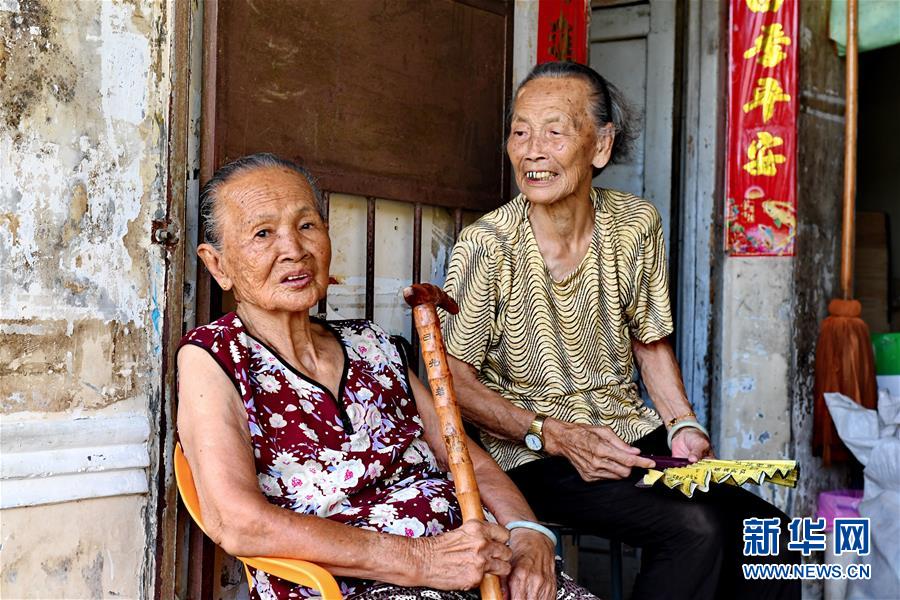 老人在鼓浪嶼家門(mén)前休息聊天(8月29日攝)。被列入世界文化遺產(chǎn)名錄的廈門(mén)鼓浪嶼以其風(fēng)格迥異、中西合璧的建筑,富有特色的商鋪吸引了四面八方的游客。 新華社記者 張國(guó)俊 攝
