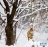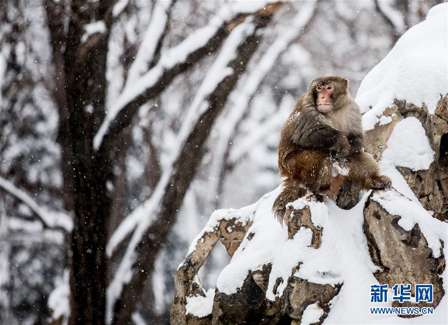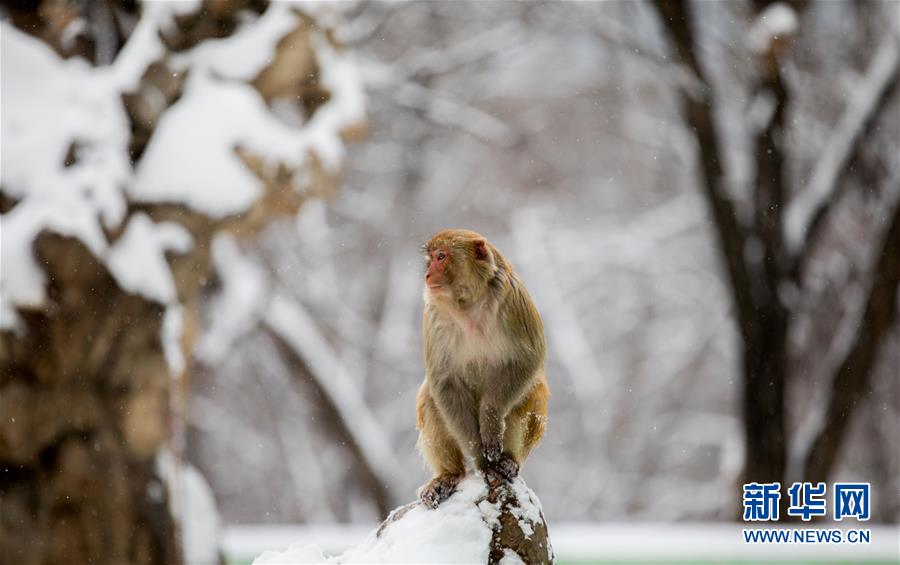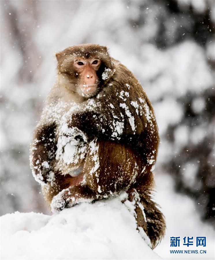 •   1月4日,安徽省淮北市相山公園的猴子獨立雪中。 當日,淮北迎來一場強降雪。新華社發(fā)(王文 攝)
