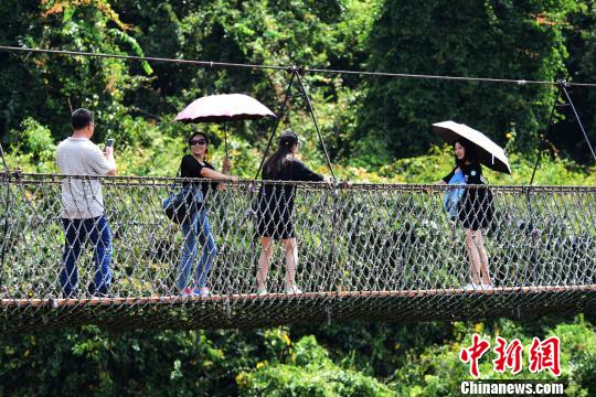 清明期間,游客在三亞亞龍灣熱帶天堂森林旅游區(qū)游玩。 黃慶優(yōu) 攝