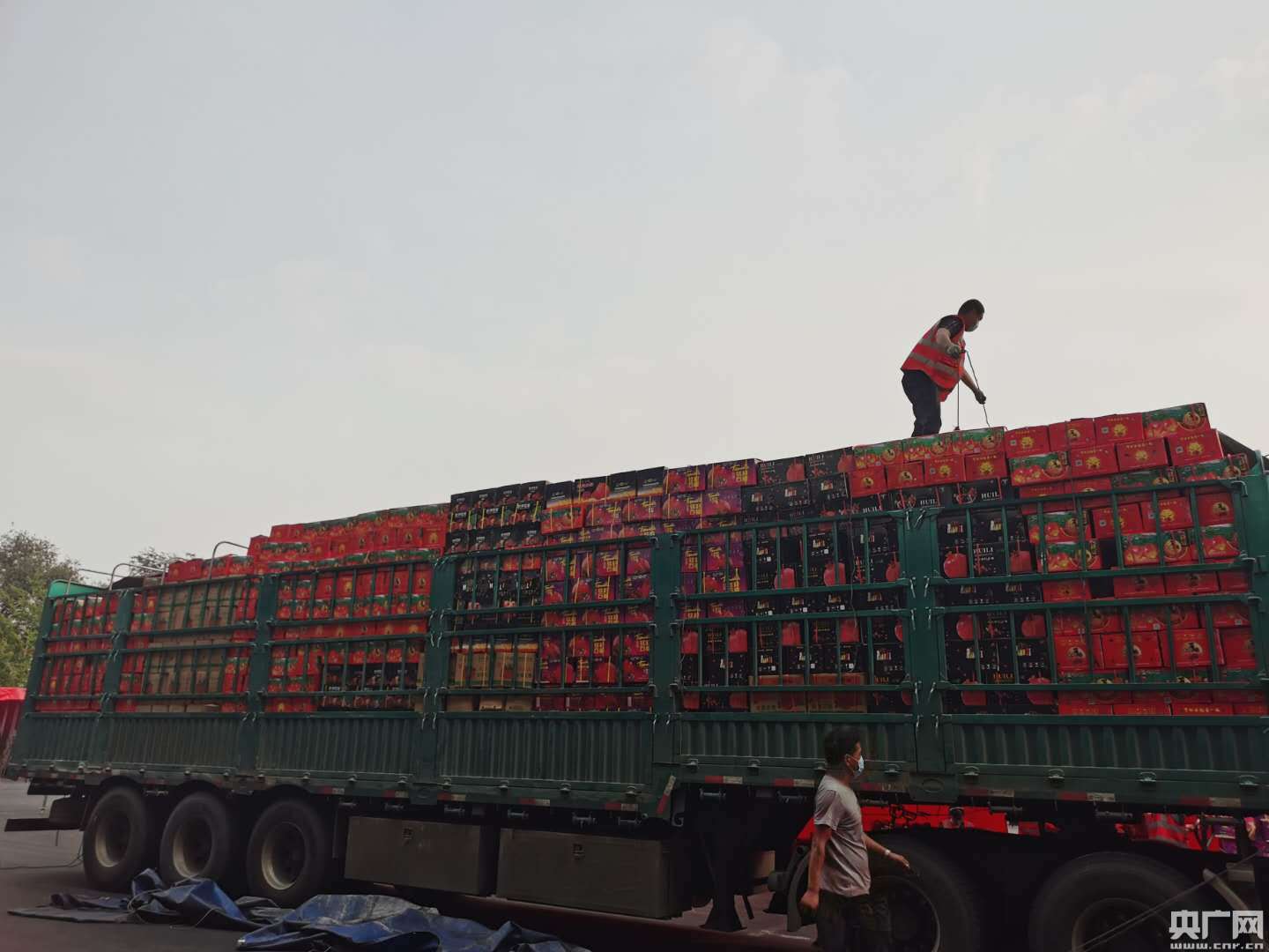 (來自四川涼山會理縣的貨車上,新發(fā)地員工正在卸車。實習記者王紅霞 攝。)
