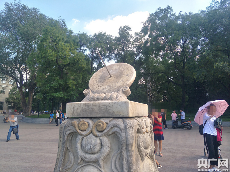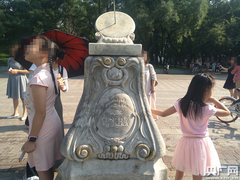 而就在記者探訪時(shí),周圍還有不少游客“指導(dǎo)”孩子摸著日晷合影拍照。