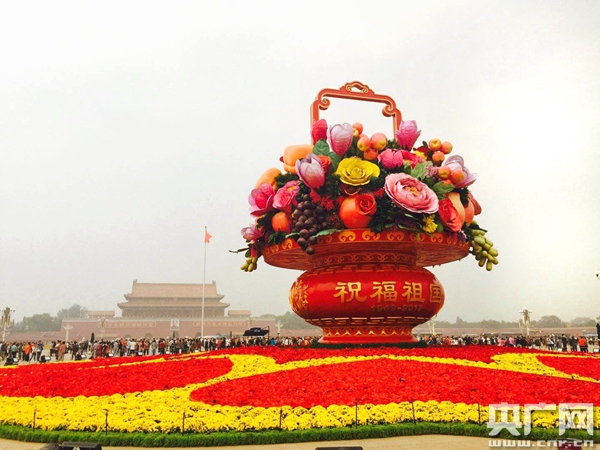 天安門廣場(chǎng)中心 祝福祖國(guó)花籃 張佳琪 攝