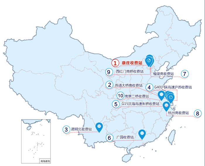 北京康莊收費(fèi)、蘇州蘇通大橋南收費(fèi)站、昆明北收費(fèi)將站