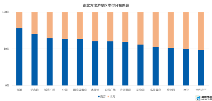 此外,從南北方景區(qū)出游類(lèi)型分布差異上看,十一黃金周期間預(yù)計(jì)南方的出游用戶比例將高于北方,其中受溫度影響,海灘游南方將明顯高于北方,而在世界遺產(chǎn)、教堂類(lèi)景區(qū)的出游占比上,北方則偏高于南方。