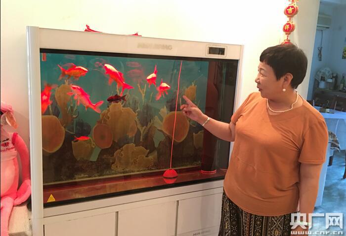 家住北京大興區(qū)佳和園新區(qū)張秀麗告訴記者,使用此前的井水養(yǎng)魚,魚缸上總有一道道明顯的水垢的痕跡,且魚也不容易成活。去年用上“南水”后,直接將自來水加入魚缸,不僅魚缸上不見水垢痕跡,養(yǎng)的魚也都活動(dòng)得很歡實(shí)。央廣網(wǎng)記者王晶 攝