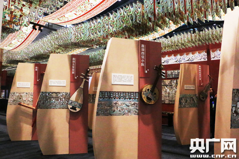 壁畫仿制樂器展出。 (央廣網(wǎng)記者 張喬 攝)