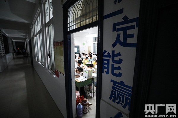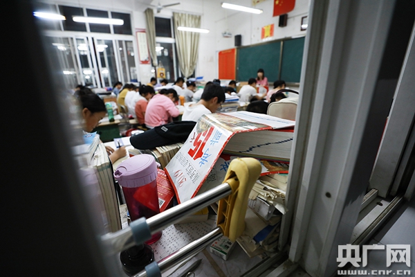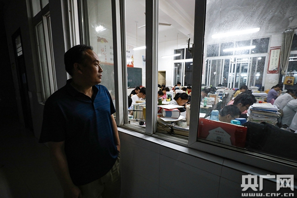 河南省舞鋼市第一高級(jí)中學(xué),師生積極備考,圖為一名老師在教室外關(guān)注學(xué)生自習(xí)情況。(央廣網(wǎng)記者 張凱航 攝)
