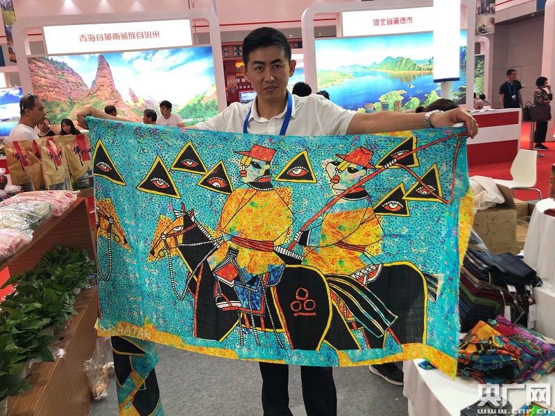 海南展區(qū)的黎繡織品(中央廣播電視總臺(tái)央廣記者 李展鴻 攝)