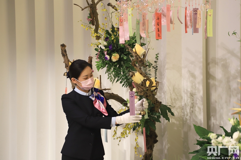 “云”代祭追思活動(dòng)中,工作人員掛上祝福鈴鐺(央廣網(wǎng)記者 張佳琪 攝)