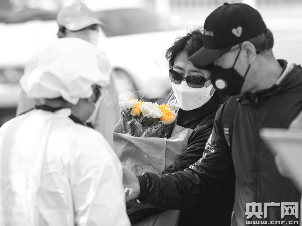 八寶山人民公墓為前來祭掃的市民提供免費鮮花(央廣網(wǎng)記者 張佳琪 攝)