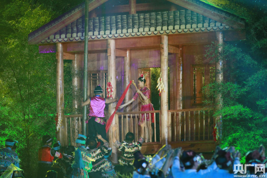 一首首情歌從窗口飛出,一個(gè)個(gè)靚妹俊哥從河的兩岸走來(lái),阿哥阿妹盡情歌唱喲,演繹侗族大霧梁永不消逝的情歌.....。在皇都景區(qū)分會(huì)場(chǎng),大型原生態(tài)情歌大對(duì)唱實(shí)景演出——“歌醉侗寨”正在精彩開(kāi)演。該節(jié)目時(shí)長(zhǎng)1個(gè)半小時(shí),依托坪坦河兩岸侗寨風(fēng)光,以侗族情歌對(duì)唱為主線,將四里山歌、苗歌、瑤歌、喉路歌、蘆笙、木葉、侗笛、琵琶歌有機(jī)融合,讓游客在觀賞美麗山水、古樸侗寨的同時(shí),盡情聆聽(tīng)到美妙的歌聲。 “今年的節(jié)目讓我耳目一新,大戊梁歌會(huì)一年比一年精彩!睆V東游客楊濤豎起大拇指稱贊。 “不僅精彩,活動(dòng)內(nèi)容豐富,有品味,景區(qū)文化內(nèi)涵大大提升了!北本┯慰忘S玲插話過(guò)來(lái)。 -