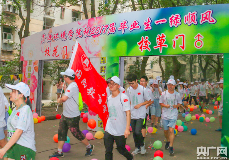 央廣網(wǎng)武漢6月22日消息(記者凌姝 通訊員張?jiān)婄?周黎明 攝影通訊員向正鵬)畢業(yè)典禮、校園迷你馬拉松、文藝晚會(huì)、畢業(yè)生紀(jì)念餐、最后一堂思政課……畢業(yè)季來臨,湖北大學(xué)舉辦系列活動(dòng),歡送2017屆大學(xué)生畢業(yè)。6月21日,湖北大學(xué)黨委書記尚鋼、校長(zhǎng)趙凌云帶領(lǐng)900多名畢業(yè)生,在校園里舉行了一場(chǎng)歡樂的3公里迷你馬拉松活動(dòng)。 -