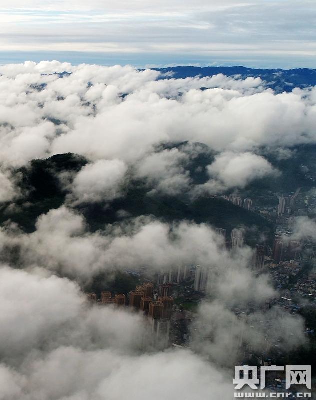 云霧籠罩下的重慶酉陽縣城 勝似人間仙境
