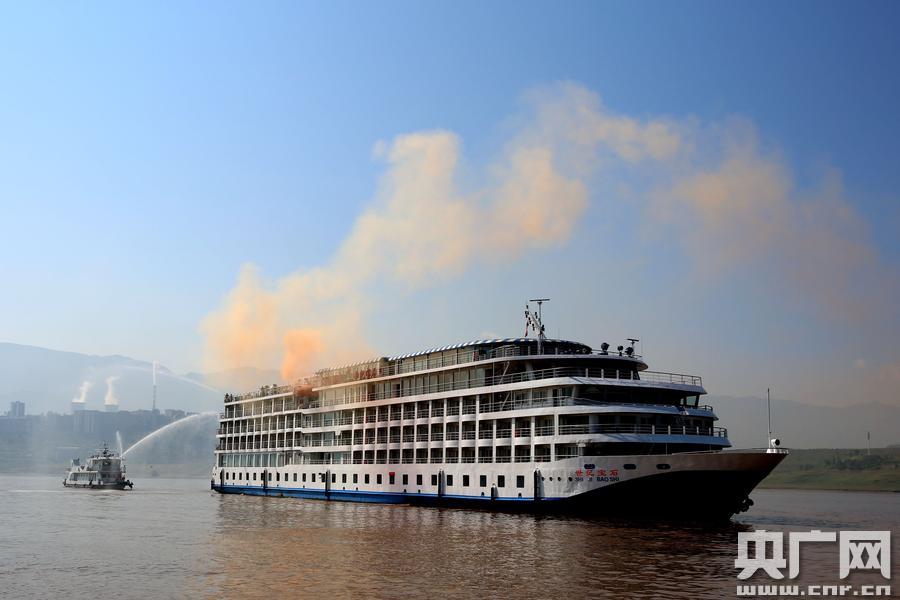 長(zhǎng)江客船綜合應(yīng)急處置演練在重慶忠縣舉行(央廣網(wǎng)發(fā) 彭南祥攝) 當(dāng)天上午9時(shí)30分,演練正式開(kāi)始。演練模擬涉外旅游客船“世紀(jì)寶石”輪,載客135人、船員115名,航行至忠縣石寶旅游碼頭水域時(shí),船舶六樓救生甲板失火,火勢(shì)迅速蔓延,船上旅客人身安全面臨嚴(yán)重威脅。船長(zhǎng)立即向忠縣海事處報(bào)告,請(qǐng)求緊急救助! -