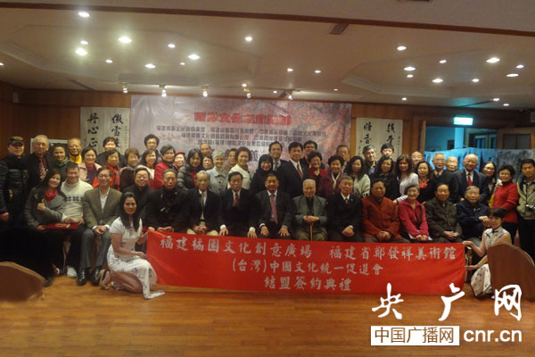 在臺北舉辦聯(lián)合簽約的有兩岸十多家文化產(chǎn)業(yè)單位和團體,包括:福建橘園文化創(chuàng)意廣場、福建省鄭發(fā)祥美術(shù)館、國之韻(福建)國際文化產(chǎn)業(yè)發(fā)展有限公司、福建橘園文化創(chuàng)意發(fā)展有限公司、臺灣中國文化統(tǒng)一促進會、臺灣中國文化博物館、臺灣中華書畫學(xué)會、中華兩岸連鎖經(jīng)營協(xié)會、臺灣海峽兩岸文教經(jīng)貿(mào)交流協(xié)會、臺灣中華微型創(chuàng)意協(xié)會等。它們將共同組成兩岸文化聯(lián)盟,為加強海峽兩岸文化創(chuàng)意的交流譜寫新的樂章。