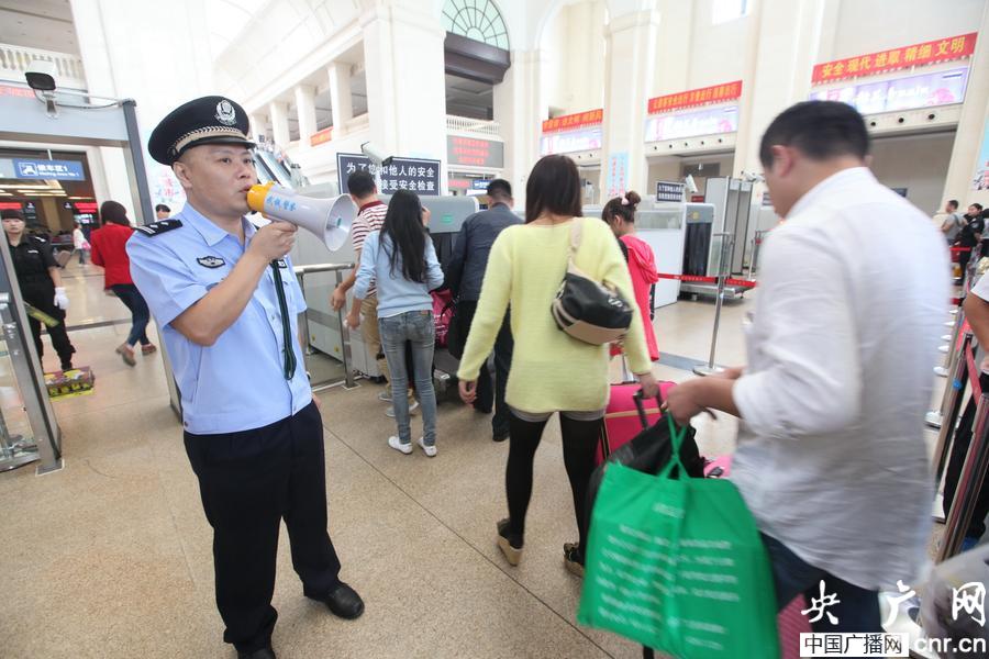 9月29日,武漢鐵路公安處客車刑警大隊(duì)的偵查員們來到漢口火車站,在候車室向旅客面對(duì)面地講解出行注意事項(xiàng):