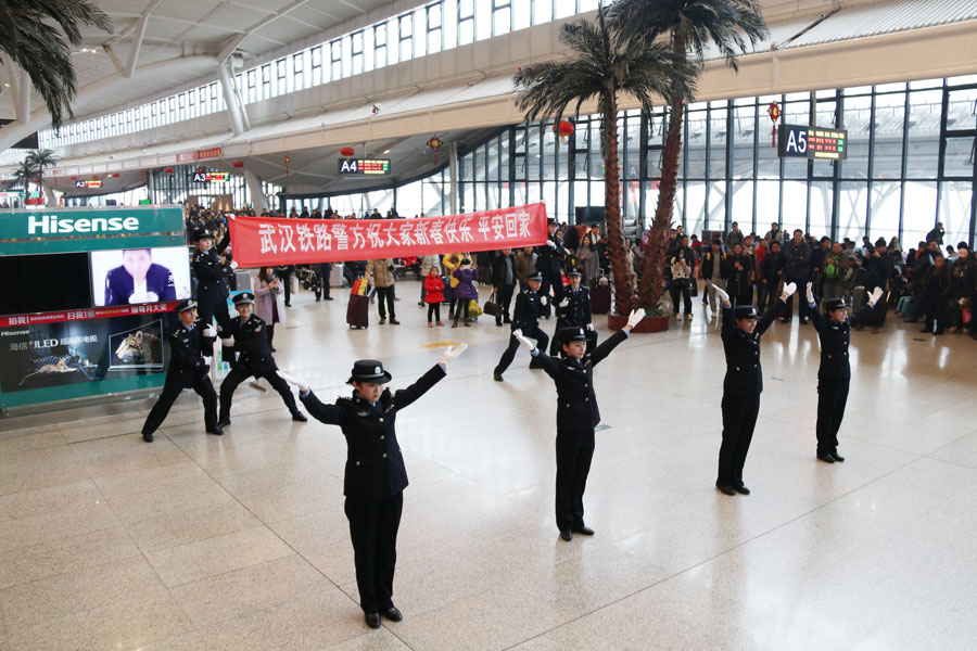 2017年春運(yùn)大幕將于明日正式拉開,武漢鐵路警方希望通過這種新穎獨(dú)特的方式,拉近與旅客之間的距離,并向廣大出行旅客傳遞安全出行理念,吹響“平安、有序、溫馨”出行的春運(yùn)集結(jié)號(hào)。
