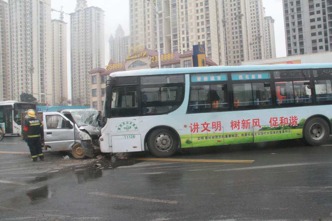 央廣網(wǎng)武漢1月18日消息(記者左艾甫 通訊員王剛)1月18日11時40分左右,湖北襄陽襄州區(qū)航空路襄陽東站進(jìn)口處發(fā)生一起車禍,一輛小貨車和公交車相撞,致貨車車頭變形,駕駛員被困,公交車上一名乘客受輕傷。