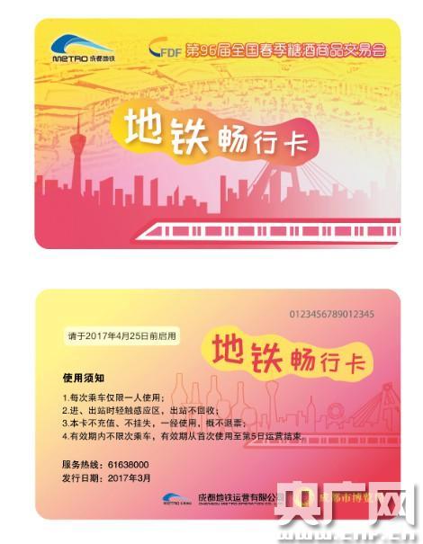 本次糖酒會“地鐵暢行卡”售價為60元/張,于2017年4月25日前啟用有效,首次使用起,5個運營日內可不限次數(shù)、不限距離乘坐地鐵。采用不記名、不充值、不掛失、不回收、不退卡的形式,非卡片質量問題不更換。
