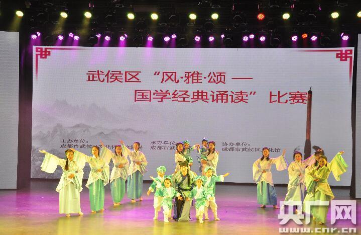 市民代表向全社會(huì)發(fā)起了以“悅讀·在路上”為主題的全民閱讀推介活動(dòng),并向發(fā)出了倡議:倡議每一位市民、每一個(gè)家庭、每一個(gè)單位、每一名黨員干部積極行動(dòng)起來(lái),把閱讀作為一種生活態(tài)度,一種工作責(zé)任,一種自覺(jué)習(xí)慣,一種精神追求,努力成為讀書(shū)學(xué)習(xí)的表率。在2016年書(shū)香武侯全民閱讀活動(dòng)中,成都武侯區(qū)評(píng)選出10個(gè)書(shū)香之家和10名全民閱讀之星,并為獲得“書(shū)香之家”的家庭代表授予榮譽(yù)稱號(hào)。 “2017武侯區(qū)風(fēng)·雅·頌國(guó)學(xué)誦讀”在武侯區(qū)人力資源和社會(huì)保障局楊睿誦讀的《人生》的追問(wèn)中拉開(kāi)帷幕。隨后,是簇橋街道帶來(lái)的《詩(shī)意花語(yǔ)》誦讀,在誦讀表演環(huán)節(jié)中,不論是一群可愛(ài)孩子帶來(lái)的《國(guó)學(xué)經(jīng)典匯集》,還是身著漢服的大學(xué)生詩(shī)詞誦讀表演,都讓觀眾們掌聲不斷,直呼精彩。在誦讀方陣的誦讀感染下,現(xiàn)場(chǎng)眾多觀眾不禁跟著低吟淺誦,感受著東坡經(jīng)典作品的魅力。在觀眾表演環(huán)節(jié),從孩子到成人,從伙伴組團(tuán)到家庭上場(chǎng),誦讀一首首膾炙人口的經(jīng)典,將活動(dòng)氛圍推向高潮。 據(jù)悉,風(fēng)·雅·頌國(guó)學(xué)誦讀活動(dòng)是武侯區(qū)圖書(shū)館繼打造《書(shū)·閱》電臺(tái)、以“陳岳先生講好家訓(xùn)好家風(fēng)”系列講座為主線的行知講堂、panda胖噠課堂三大文化惠民品牌之后,為進(jìn)一步拓展全民閱讀的深度和廣度,加強(qiáng)公共文化服務(wù)體系建設(shè),為服務(wù)廣大讀者的又一項(xiàng)新舉措。旨在通過(guò)開(kāi)展經(jīng)典誦讀、文字喚起沉淀的情感,將文字轉(zhuǎn)以情帶聲、以聲傳情,盡顯誦讀的無(wú)窮的語(yǔ)言魅力。讓廣大讀者從優(yōu)秀的作品中汲取營(yíng)養(yǎng),開(kāi)闊視野,豐富知識(shí),提高文化底蘊(yùn)和文化修養(yǎng)。 近年來(lái),武侯圖書(shū)館以“書(shū)香洋溢武侯、文化引領(lǐng)發(fā)展”為理念,通過(guò)開(kāi)展全民閱讀《書(shū)·閱》電臺(tái)和行知講堂系列講座活動(dòng),傳播閱讀理念,倡導(dǎo)全民閱讀,傳承文明品質(zhì),提升文化品位,豐富文化生活,讓閱讀成為廣大市民的一種生活方式,大力培育和弘揚(yáng)社會(huì)主義核心價(jià)值觀,展現(xiàn)武侯人特有文化內(nèi)涵和良好人文風(fēng)貌,為書(shū)香武侯、和諧武侯建設(shè)提供了強(qiáng)大精神動(dòng)力和文化條件。