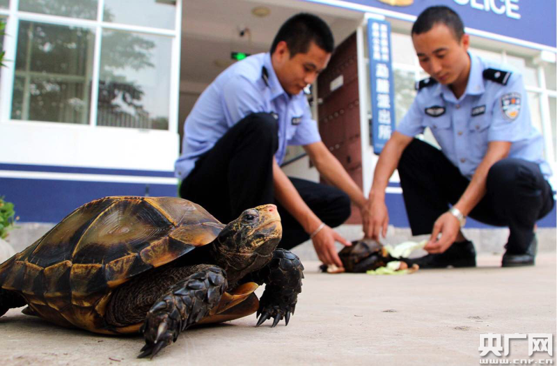 家住勐臘縣勐伴鎮(zhèn)的巖某 是5月10日下午16時在朋友圈發(fā)的山烏龜小視頻。視頻發(fā)布以后,引發(fā)了眾多朋友的轉(zhuǎn)發(fā)。云南西雙版納州勐臘派出所的民警發(fā)現(xiàn)后,仔細辨認,初步判斷兩只山烏龜為國家二級重點保護野生動物凹甲陸龜。意識到情況緊急,西雙版納州森林公安局勐臘派出所立即組織警力展開調(diào)查。為了趕在巖某宰殺烏龜前找到巖某,民警立即驅(qū)車前往巖某家“解救”凹甲陸龜。半小時后,民警在巖某家找到了發(fā)布朋友圈信息的巖某,并在其家中院內(nèi)一塑料桶內(nèi)找到了視頻中的兩只山烏龜。所幸兩只山烏龜并未被宰殺。