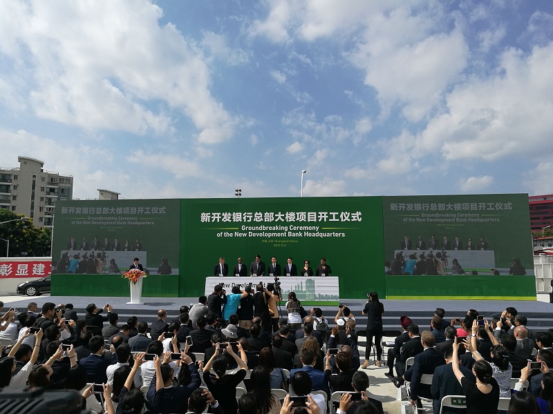 央廣網(wǎng)上海9月2日消息(記者傅聞捷)新開發(fā)銀行總部大樓今天上午在上海浦東世博園區(qū)破土動工,財政部部長肖捷、上海市市長應(yīng)勇、新開發(fā)銀行行長卡馬特等出席項目開工儀式并與金磚國家代表共同啟動大樓建設(shè)。