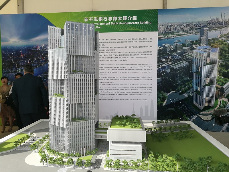 作為首個落戶上海的國際金融組織,新開發(fā)銀行總部大樓選址位于世博園A片區(qū),南至雪野路,西至高科西路,北至國展路,占地面積1.2萬平方米,總建筑面積12.6萬平方米。大樓設(shè)計方案通過全球征集形成,建造力求體現(xiàn)以人為本、綠色生態(tài)和新開發(fā)銀行“創(chuàng)新、平等、透明、可持續(xù)發(fā)展”的價值理念。建筑主體形象突出、識別度高,建成后將成為黃浦江沿岸又一地標性建筑。