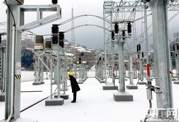 1月27日,成都供電段組織干部職工對此次降雪受影響區(qū)段變電所設備進行巡視檢查。(尹煒 攝)