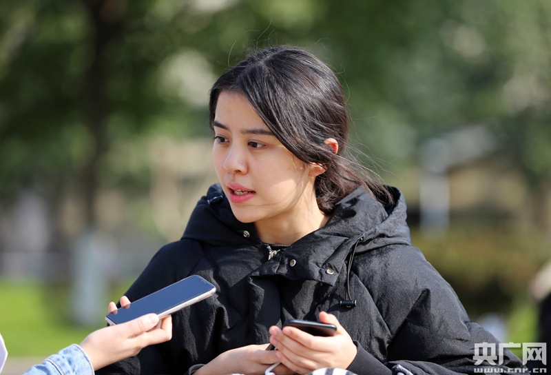 1月23日,來自江蘇無錫的考生王靜涵在浙江傳媒學院考點接受采訪。(央廣網(wǎng)記者 魏煒 攝)