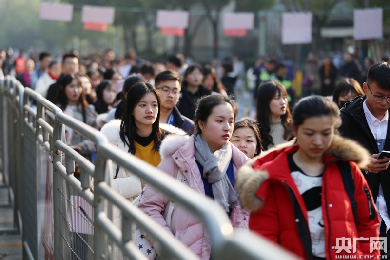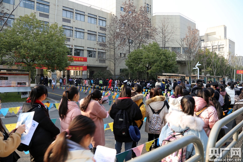 1月24日,參加初試的考生排隊進入考場準備考試。(央廣網(wǎng)記者 魏煒 攝)