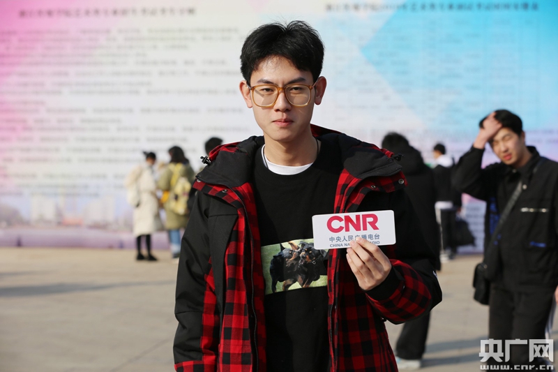 1月24日,來自山東日照的考生費陽結束考試后在浙江傳媒學院留影。(央廣網(wǎng)記者 魏煒 攝)