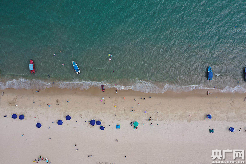 在海邊休閑的人們。(央廣網發(fā) 官文清攝)
