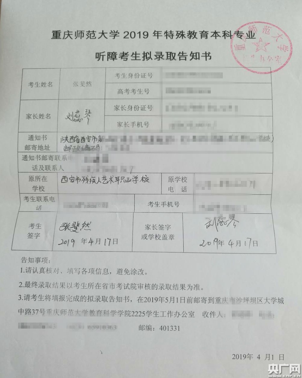 擬錄取告知書 央廣網(wǎng)發(fā) 受訪者供圖