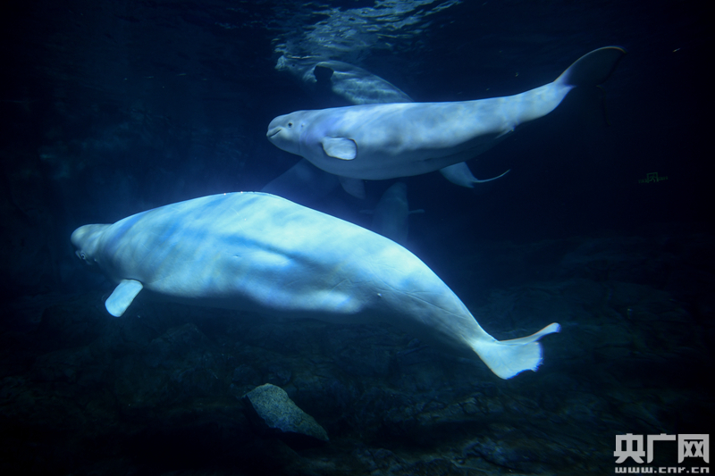 央廣網(wǎng)珠海7月25日消息(記者郭翔宇 官文清)珠海長隆在2018年12月半個(gè)月內(nèi)成功繁育三頭白鯨寶寶,屬世界首例。7月24日,珠海長隆海洋王國的三頭白鯨寶寶正式跟游客見面啦。如今經(jīng)歷了“鯨”生第一次脫皮的它們依然灰不溜秋的,雖顏值比不上雪白皮膚的媽媽,但是已經(jīng)“養(yǎng)眼”了不少,跟著媽媽活潑地游上游下,非常萌趣可愛。