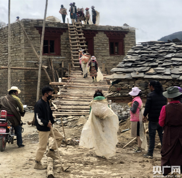快樂(lè)的杰珠村人在蓋新房(央廣網(wǎng)記者 樊承志 攝)
