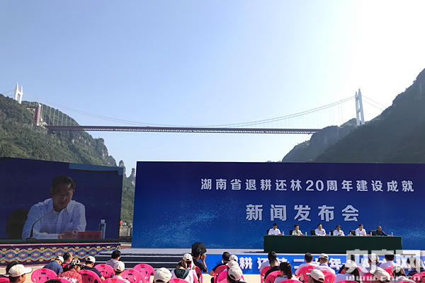 湖南省退耕還林20周年建設(shè)成就新聞發(fā)布會(huì)在湘西州吉首市矮寨鎮(zhèn)舉行(央廣網(wǎng)記者 堯遙 攝)