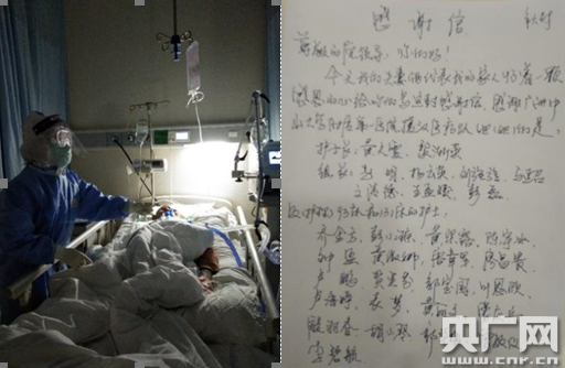 同是骨科護士的楊云英,收到了一封來自出院患者的感謝信;颊咴谛胖姓鎿吹貙懙溃骸拔覀冏≡浩陂g派來援助的護士們,非常優(yōu)秀,他們無微不至的關心,貼心的祝福,讓我們增強了戰(zhàn)勝病毒的信心!