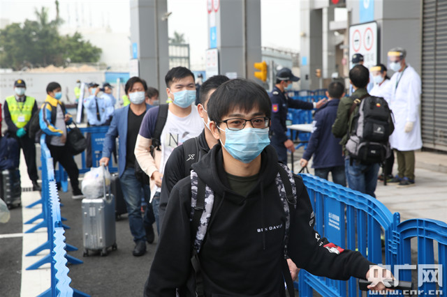 上午10時許,120名外地雇員順利抵達(dá)拱北口岸出境車道,拱北邊檢迅速啟動預(yù)案,按照提前計劃的方案有序部署,最大程度提高查驗效率,縮短整體通關(guān)時間,從車輛進(jìn)入邊檢查驗區(qū)域到全部人員出入境手續(xù)完成辦理,整個過程只用了不到半個小時的時間!罢麄過程很快,而且進(jìn)來的時候我聞到了消毒水的味道,應(yīng)該是提前做過消殺”,在澳門從事水電維修的周先生于3月14日按規(guī)定前往指定地點(diǎn)接受統(tǒng)一觀察觀察,今天觀察期滿能夠前往澳門復(fù)工,心情愉快的他在順暢通關(guān)后不禁為邊檢民警高效貼心的服務(wù)豎起了大拇指,而和他一起通關(guān)的雇員在澳門從事的工作涵蓋各行各業(yè),能夠順利復(fù)工,他們也都十分期待和高興。