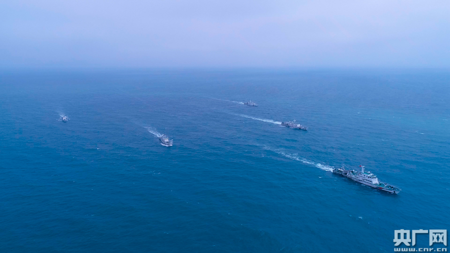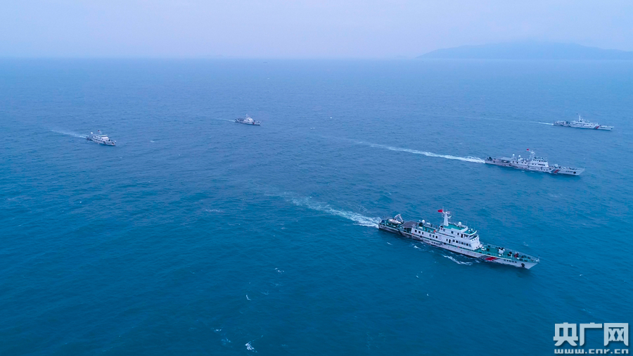 圖為汕頭海警局艦艇艦艇雙橫隊(duì)航行(央廣網(wǎng)發(fā) 汕頭海警局供圖)