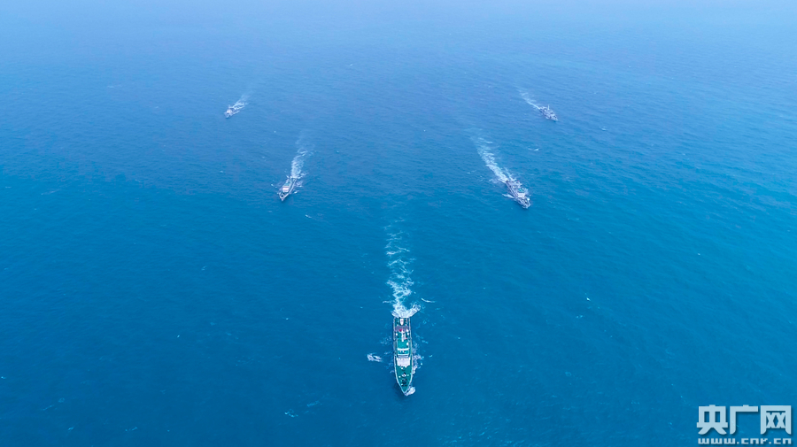 圖為汕頭海警局艦艇艦艇人字隊(duì)型航行(央廣網(wǎng)發(fā) 汕頭海警局供圖)