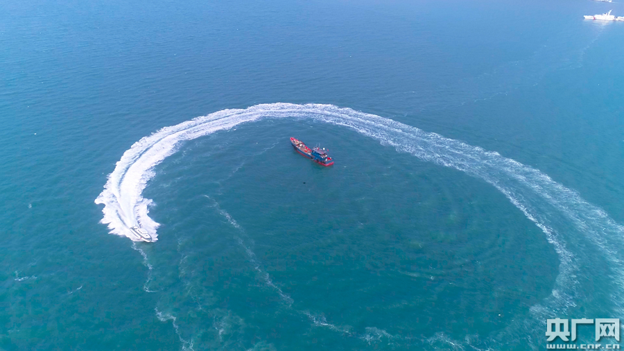 圖為汕頭海警局艦艇對(duì)“落水人員”救助科目訓(xùn)練(央廣網(wǎng)發(fā) 汕頭海警局供圖)