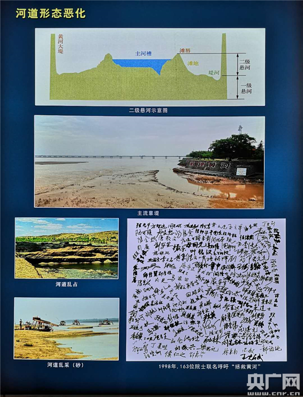 《163位院士為“拯救黃河”簽名》黃河頻繁的季節(jié)性斷流始于20世紀(jì)70年代初,特別是進(jìn)入90年代之后,斷流現(xiàn)象更為嚴(yán)重。1997年,黃河斷流達(dá)226天,從河口一直溯延到開封,為歷時(shí)最長(zhǎng)的斷流,舉世關(guān)注。1998年1月,針對(duì)黃河斷流日益嚴(yán)峻的嚴(yán)重形勢(shì),中國(guó)科學(xué)院、中國(guó)工程院163位兩院院士聯(lián)合簽名發(fā)出“拯救黃河”的呼喊。(總臺(tái)央廣記者 任磊萍 攝)
