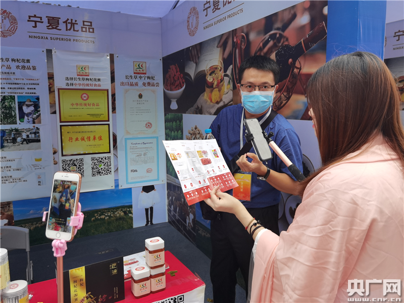 參展企業(yè)向直播主播介紹產(chǎn)品(央廣網(wǎng)記者 萬存靈 攝)