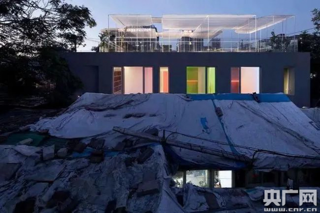 章堰村位于上海西郊的重固鎮(zhèn),是上海古文化發(fā)源地,福泉山文化的代表之一。由中建東孚城投公司投資建造的章堰村文化館,在對當(dāng)?shù)孛裾罢录艺钡呐f址老宅清理殘破部分后,原有的老墻得以保留,于是在古瓦青磚之間一棟被老墻包裹起來的建筑誕生了。白色新建筑部分遠(yuǎn)看就像是從里面“長”出來的。不是一味地推倒重建,或修舊如舊,而是遵循建筑本身的歷史脈絡(luò),將當(dāng)代的設(shè)計理念和功能需求置入其中,仿佛老房子里“長”出新房子。